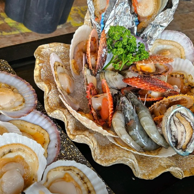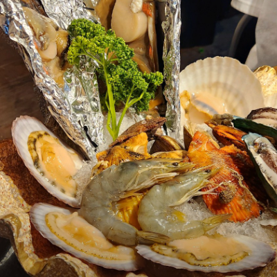 바다뷰 보면서 먹는 조개구이 환상입니다. 세팅도 넘 이쁘고 술이 술술 들어가는 맛이예요 데이트도 장소로도 손색 없어요.