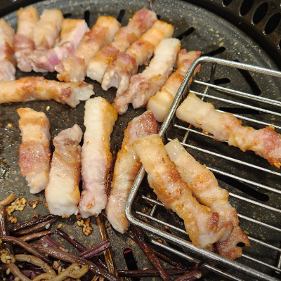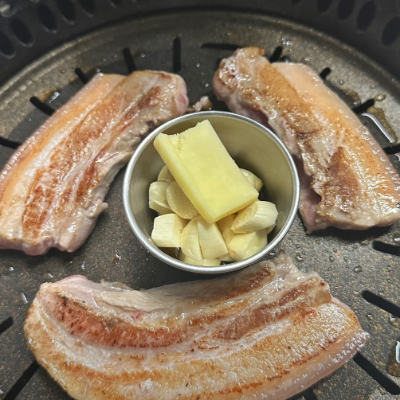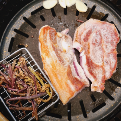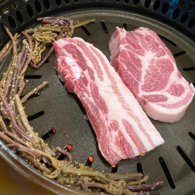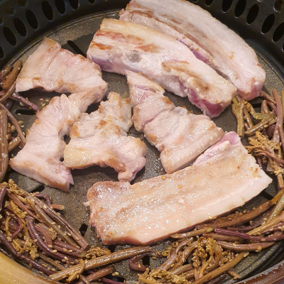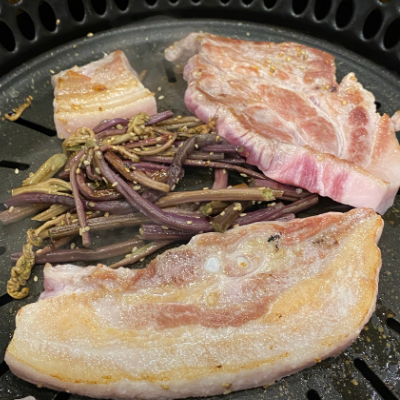 삼겹살에 고사리를 함께 굽는건 처음인데 고소하고 맛나요. 고기 잡내도 없어 특히나 좋았어요.