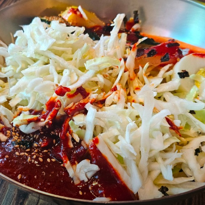 쫄면의 면이 평소 분식집에서 먹는 쫄면과는 달리 두툼했고, 양배추도 굵게 썰어져있어서 식감이 풍성했어요.