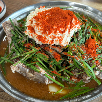 현지인 추천으로 방문했어요~ 매장 앞에 주차장이 있어 주차 편했어요. 갈은 콩이 올라가 있는 감자탕은 처음이예요.
