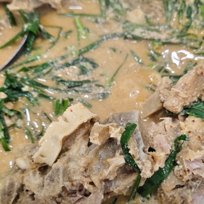 콩비지가 올라간 감자탕이에요. 고소하고 든든하고 흔한 감자탕이 아니라 좋아요. 친절하시고 맛도 좋아서 맛있게 먹고 갑니다.